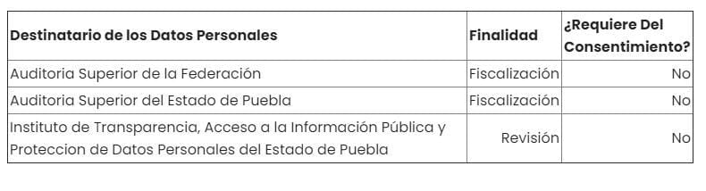 Le informamos que sus datos personales son compartidos dentro del país con las siguientes personas, empresas, organizaciones o autoridades distintas a nosotros, para los siguientes fines: (TABLA Anexo 1)